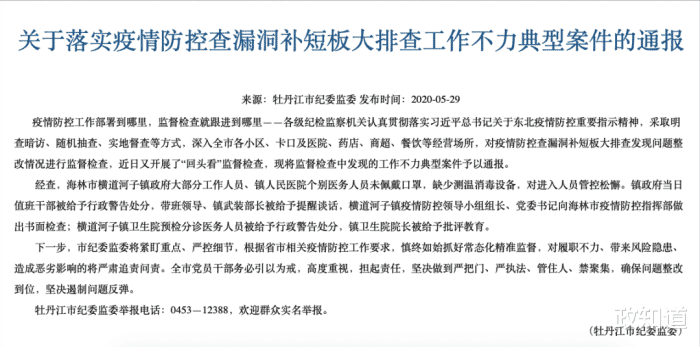 5月30日,牡丹江發(fā)布《關(guān)于市區(qū)藥店發(fā)揮疫情防控“哨點(diǎn)”作用不力典型案件的通報(bào)》。